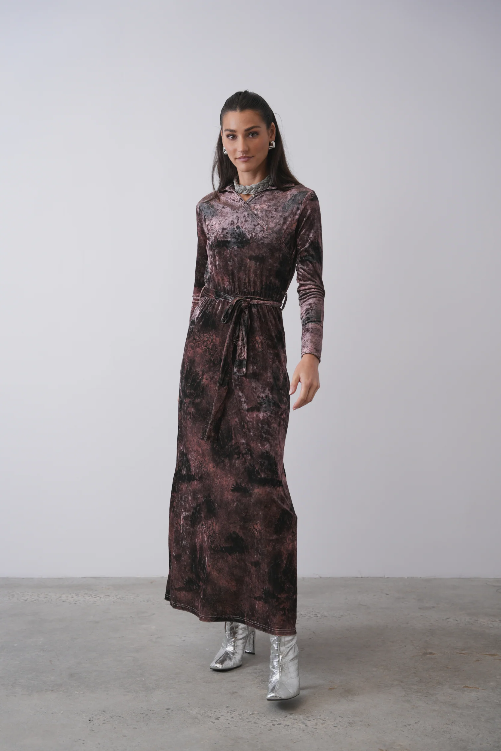 Wrap Maxi Velour Dress