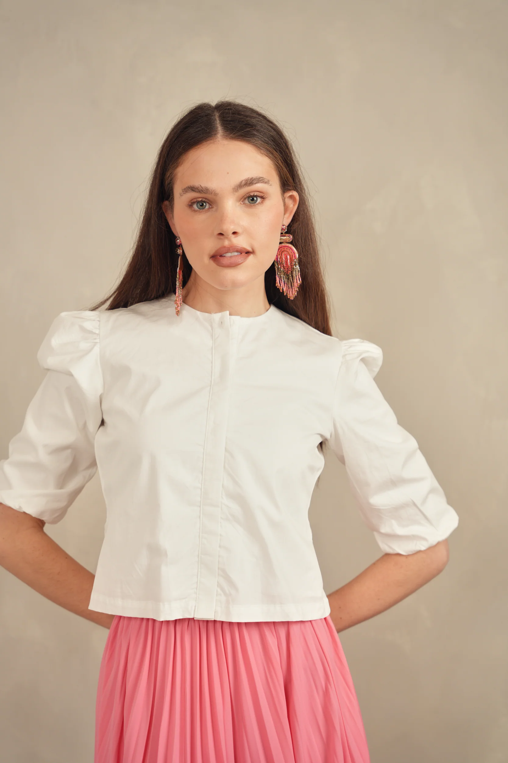 - Soft gathering at the shoulder