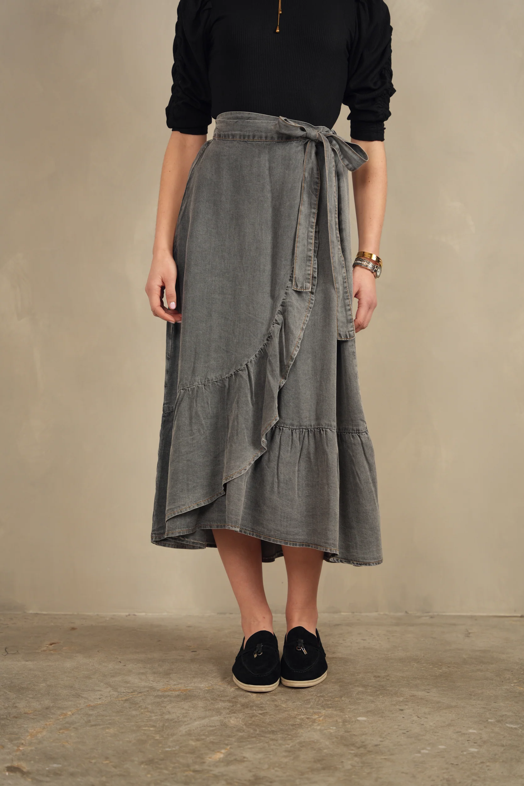 -70%Mock Wrap Tencel Skirt—